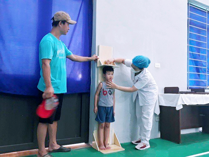 Tại các điểm uống, cán bộ y tế Trung tâm y tế huyện Chương Mỹ, Trạm y tế các xã, thị trấn phối với cộng tác viên... tổ chức hoạt động đo chiều cao, cân nặng cho trẻ để tư vấn, đánh giá thể trạng dinh dưỡng của trẻ giúp các bậc phụ huynh có các phương pháp chăm sóc trẻ hợp lý để phát triển toàn diện.