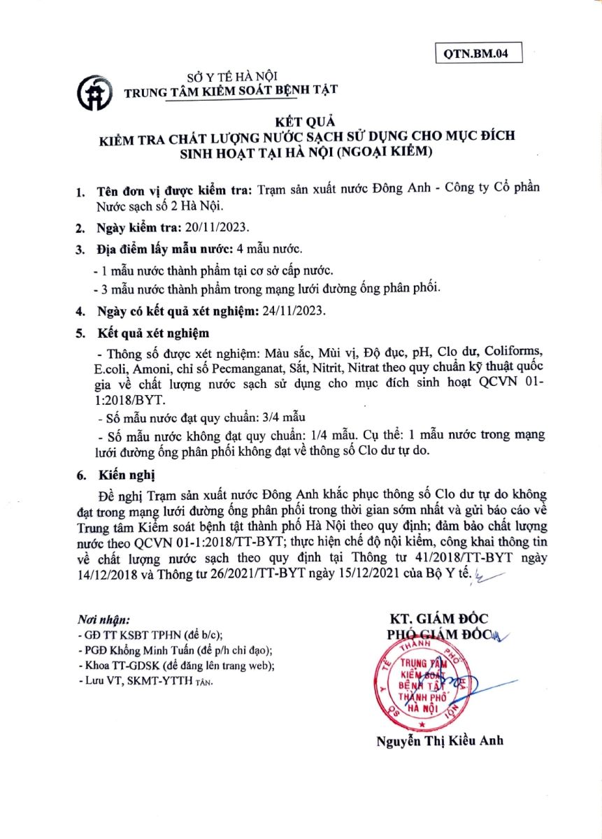 4 kết quả kiểm tra chất lượng nước sạch tại Hà Nội