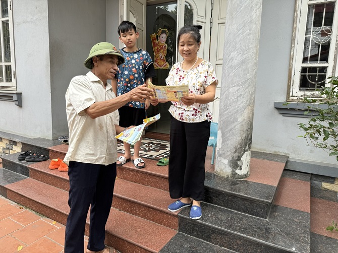 Người dân được phát tờ rơi về phòng chống sốt xuất huyết.