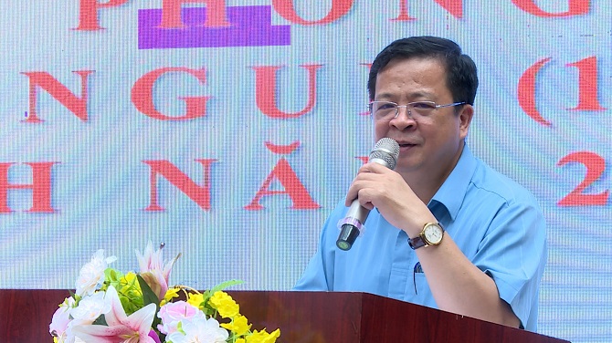 Giám đốc Trung tâm Kiểm soát bệnh tật thành phố Hà Nội Bùi Văn Hào phát biểu tại buổi lễ.