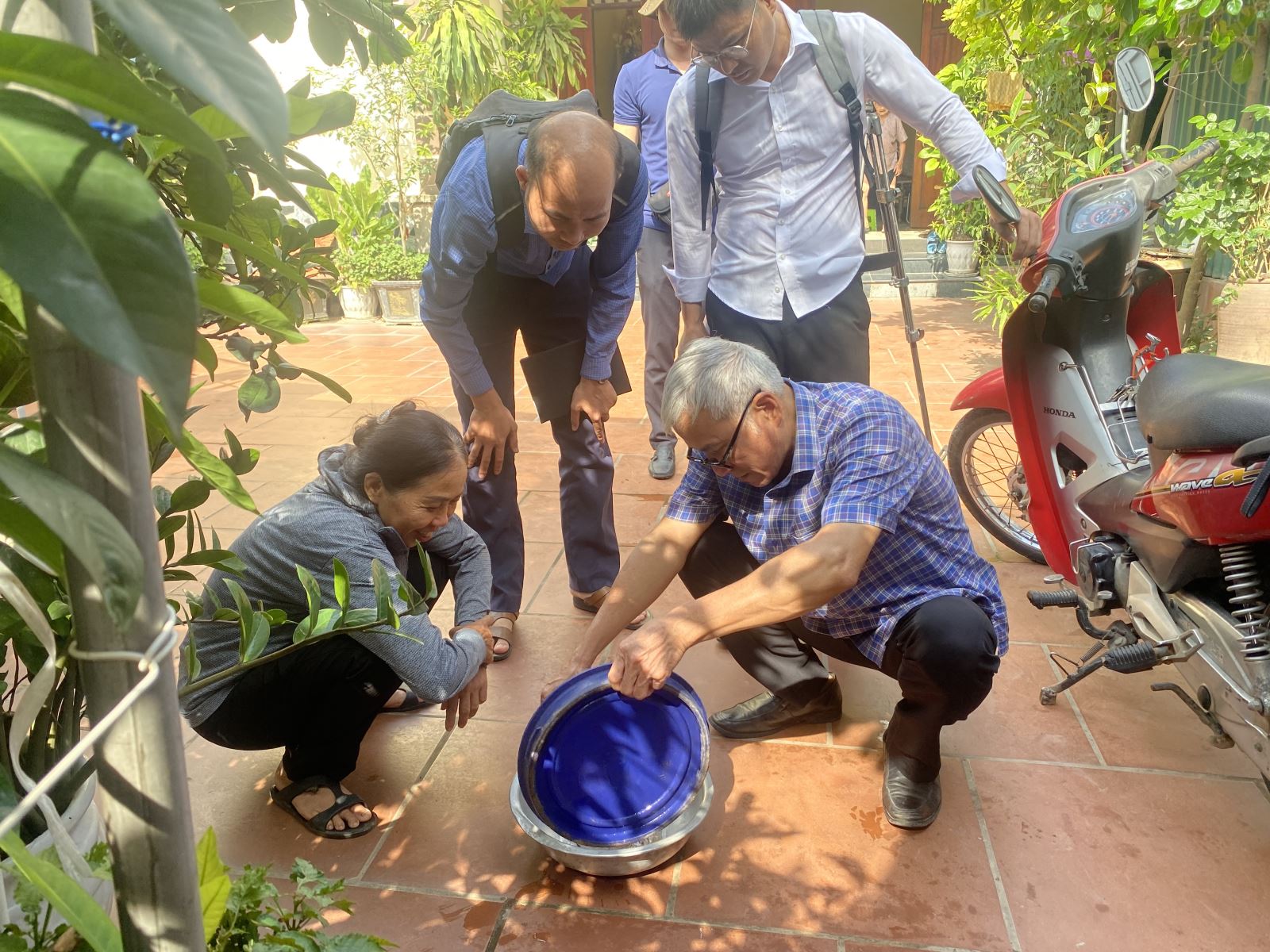 Đoàn kiểm tra công tác phòng chống dịch số 1 Thành phố kiểm tra các bể chứa nước tại các hộ gia đình trên địa bàn huyện Chương Mỹ.