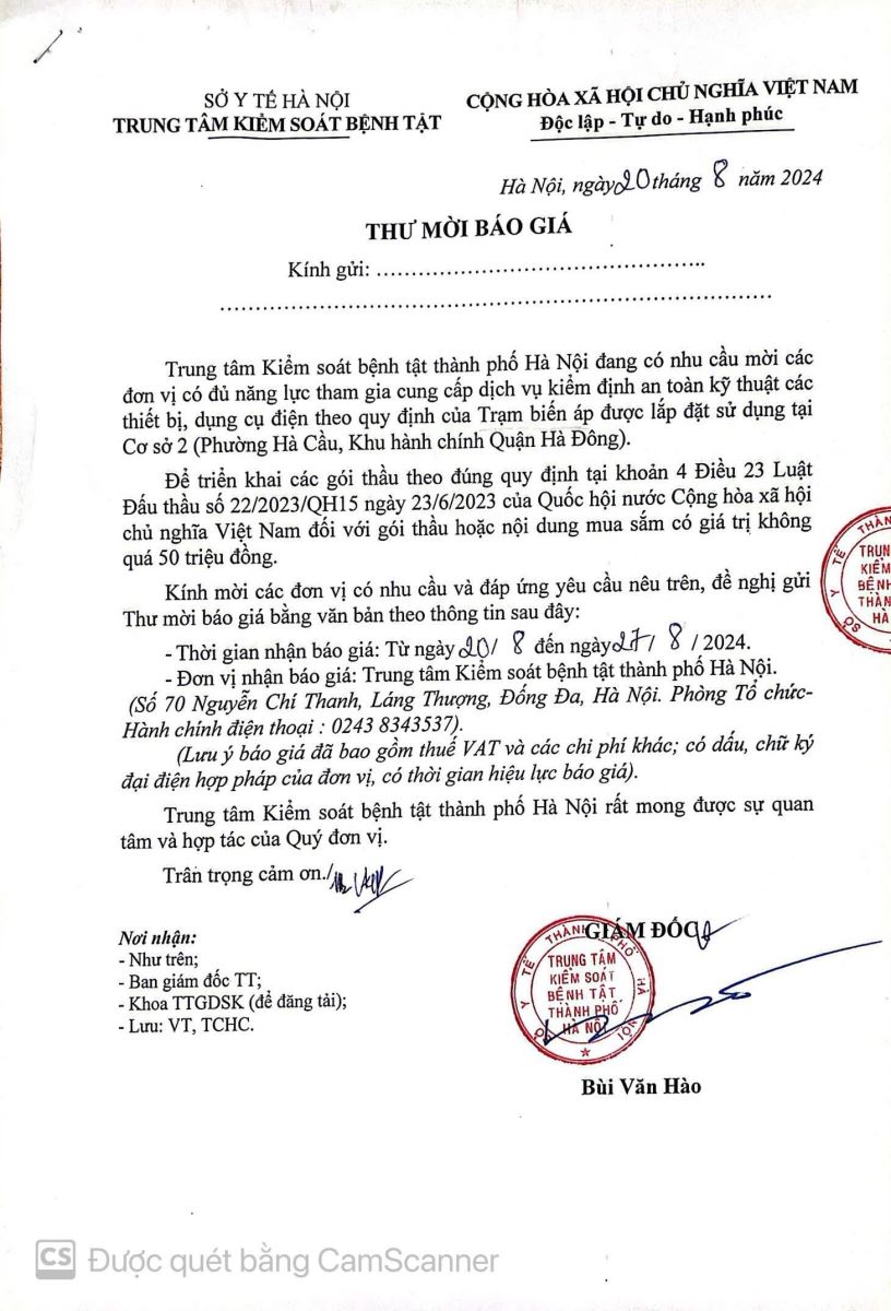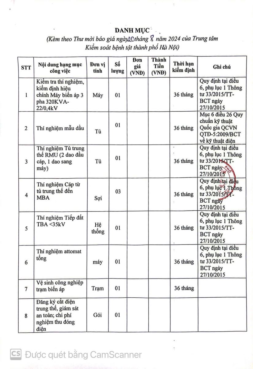 Thư mời báo giá cung cấp dịch vụ kiểm định an toàn kỹ thuật các thiết bị, dụng cụ điện theo quy định của Trạm biến áp được lắp đặt sử dụng tại Cơ sở 2