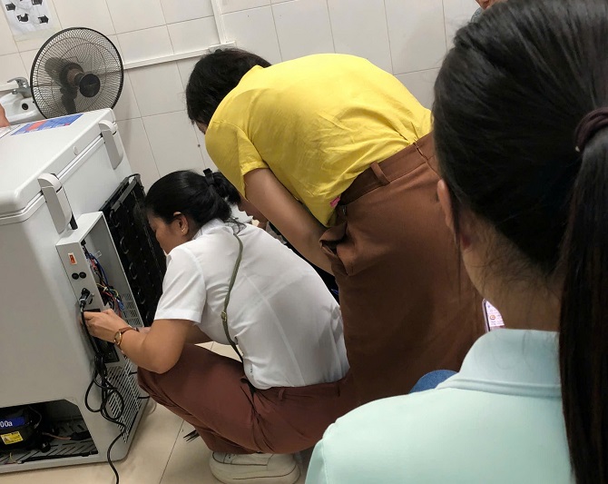 Hà Nội: Tập huấn sử dụng, bảo dưỡng, sửa chữa tủ lạnh bảo quản vắc xin HBC - 80 cho cán bộ y tế tuyến xã