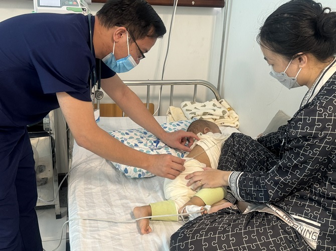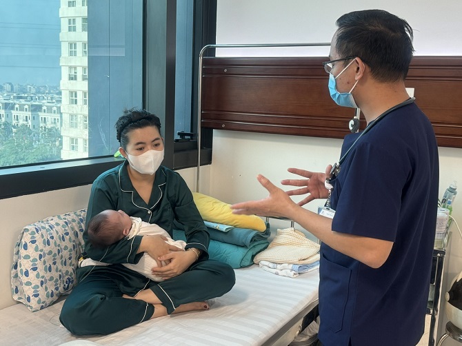 Bác sỹ nội trú Nguyễn Sỹ Đức tư vấn thêm cho gia đình người bệnh chăm trẻ.