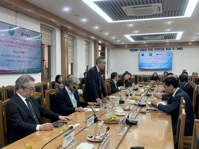 Theo ông Nguyễn Thành Vinh, Giám đốc Bệnh viện đa khoa Hà Đông cho biết, hiện Bệnh viện đa khoa Hà Đông điều trị nội trú cho 1.000 – 1.500 bệnh nhân/ ngày, trong năm 2024 bệnh viện đã thực hiện phẫu thuật cho15.000 ca. Bệnh viện đa khoa Hà Đông rất mong muốn trong buổi trao đổi này nhân viên y tế Bệnh viện đa khoa Hà Đông được đến học tập, giao lưu tại Bệnh viện Đại học Kobe trong thời gian tới với các chuyên ngành Ngoại khoa, Nội khoa, Điều dưỡng ...