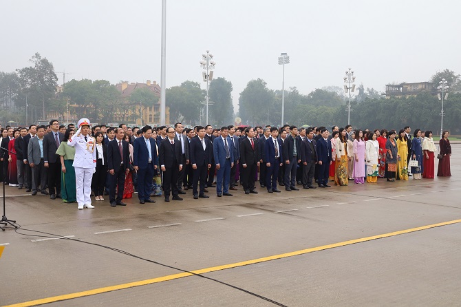 Đoàn đại biểu làm nghi lễ dâng hoa viếng Chủ tịch Hồ Chí Minh.