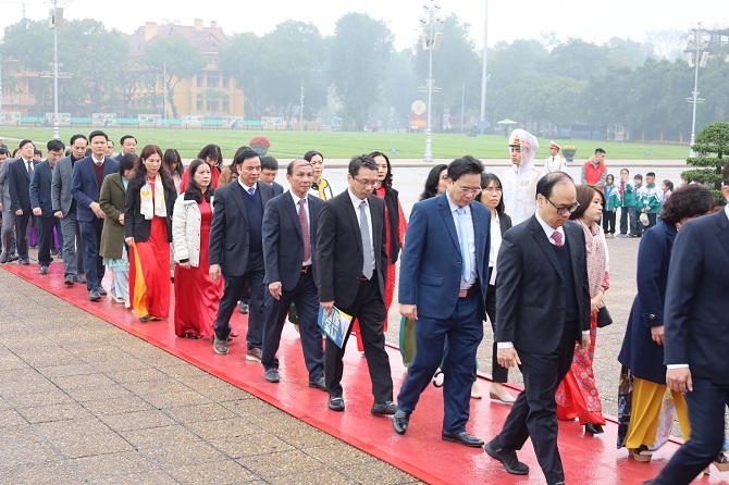 Nhân dịp kỷ niệm 70 năm Ngày Thầy thuốc Việt Nam, sáng nay 22/2, tại Quảng trường Ba Đình lịch sử, với lòng thành kính và biết ơn vô hạn đối với Bác Hồ kính yêu, vị lãnh tụ vĩ đại, anh hùng giải phóng dân tộc, danh nhân văn hóa thế giới. Đoàn đại biểu hơn 500 cán bộ, công chức, viên chức Ngành Y tế Hà Nội do TS. Nguyễn Đình Hưng, Phó Giám đốc phụ trách Sở Y tế Hà Nội làm Trưởng đoàn với tấm lòng thành kính, báo cáo với Bác những thành tích của Ngành đã đạt được trong năm qua. .