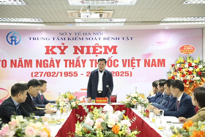 Phát biểu tại buổi đến thăm và chúc mừng, Thứ trưởng Bộ Y tế Đỗ Xuân Tuyên gửi lời chúc mừng tốt đẹp nhất với những đóng góp to lớn trong sự nghiệp chăm sóc sức khỏe nhân dân của tập thể các đồng chí lãnh đạo, cán bộ, công chức, viên chức, người lao động CDC Hà Nội.