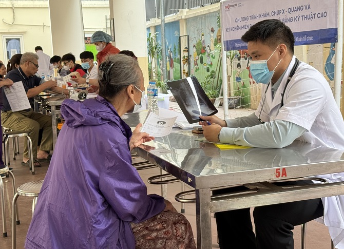 Bác sĩ Bệnh viện Phổi Hà Nội tư vấn cho bệnh nhân chụp Xquang.
