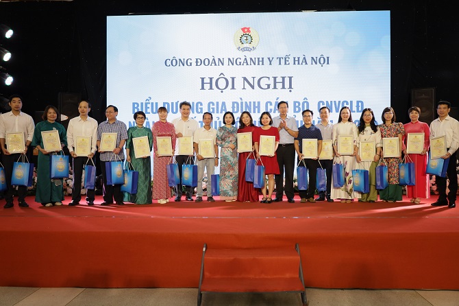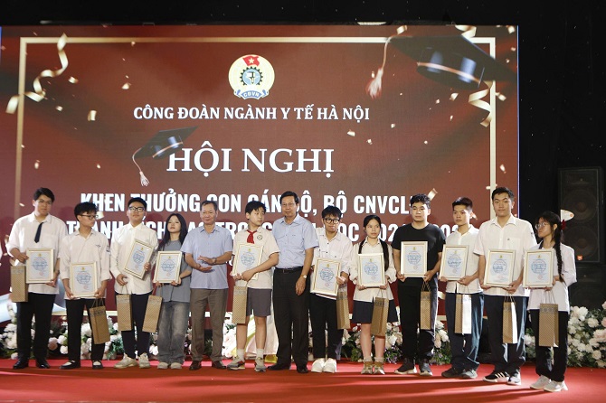Bên cạnh đó, các cán nữ cán bộ viên chức lao động của ngành không chỉ hoàn thành xuất sắc nhiệm vụ chuyên môn mà còn chăm sóc, nuôi dạy, giáo dục con của mình rất tốt. Rất nhiều học sinh là con cán bộ viên chức lao động đạt thành tích xuất sắc trong học tập, đạt danh hiệu học sinh giỏi, đạt giải thưởng trong các kỳ thi học sinh giỏi cấp quận, thành phố, quốc gia, quốc tế ở đủ các cấp học phổ thông. Hằng năm các cấp công đoàn đều tổ chức biểu dương khen thưởng kịp thời các con với các tiêu chí khác nhau, vừa động viên các con và cũng là động viên cán bộ viên chức lao động. Năm 2025, Công đoàn ngành Y tế Hà Nội biểu dương 179 gia đình tiêu biểu đại diện cho hàng nghìn gia đình trong toàn ngành và 66 học sinh là con cán bộ viên chức lao động đạt giải trong các kỳ thi học sinh giỏi cấp thành phố, quốc gia, quốc tế được biểu dương khen thưởng. Rất vinh dự nhiều gia đình cả bố mẹ và con được khen thưởng năm 2025. Các gia đình thực sự là các tấm gương, là động lực để các gia đình cán bộ viên chức lao động trong ngành y tế Thủ đô thi đua học tập…