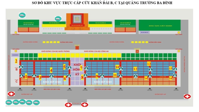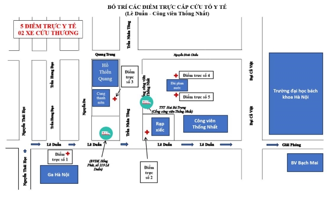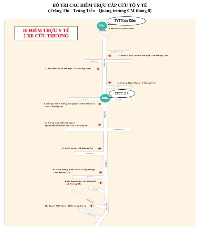 Song song với đó, các trạm y tế phường, xã cũng tổ chức thường trực cấp cứu 24/24 giờ, cử lực lượng trực tại các địa điểm diễn ra hoạt động kỷ niệm.
