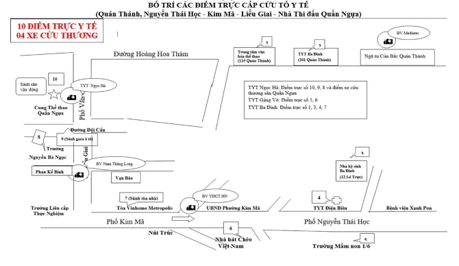 Dưới đây là sơ đồ các khu vực, điểm trực cấp cứu tổ y tế: