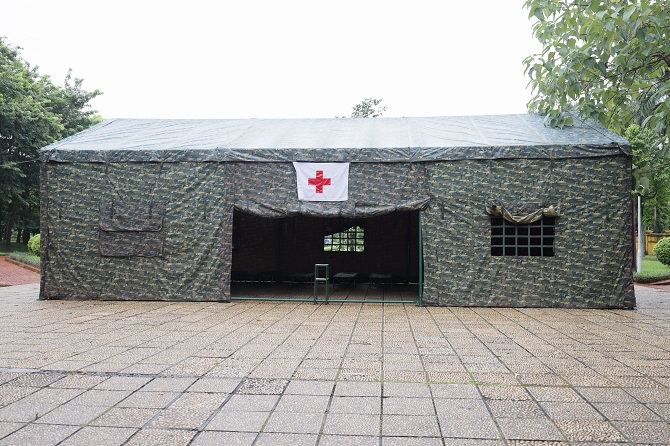 Trạm cấp cứu bố trí 30 cáng giường sẵn sàng phục vụ tình huống cấp cứu hàng loạt (nếu có).