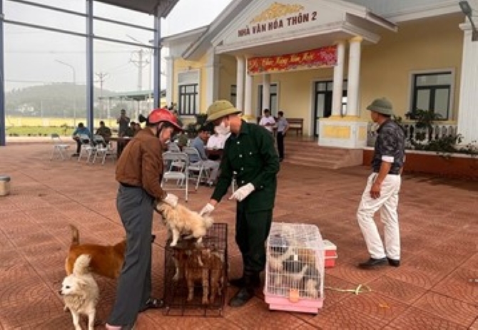 Ngành Thú y thành phố Hà Nội tổ chức tiêm vắc xin phòng dại cho đàn chó mèo.