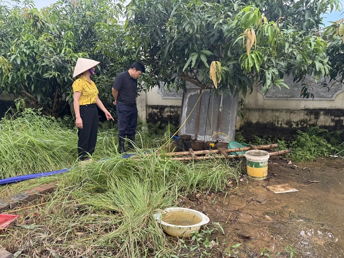 CDC Hà Nội giám sát hỗ trợ xử lý bể nước ngầm tại trường mầm non trên địa bàn xã Trung Giã.