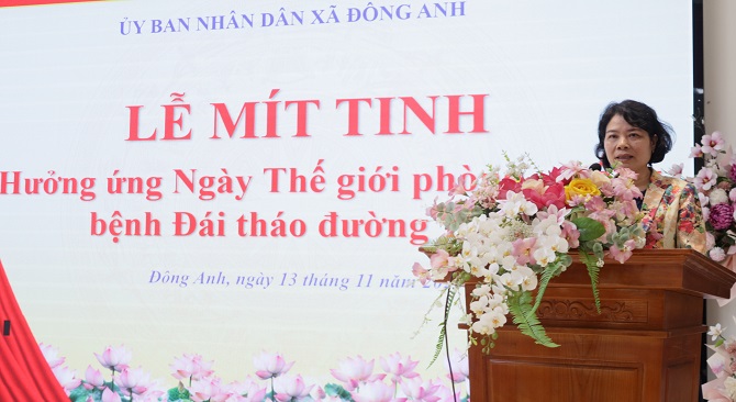 Sáng 13/11 tại Nhà văn hóa thôn Ngoài, UBND xã Đông Anh tổ chức Lễ mít tinh hưởng ứng Ngày Thế giới phòng, chống bệnh Đái tháo đường (ĐTĐ) 14/11. “Phát hiện sớm – Điều trị kịp thời – Kiểm soát hiệu quả để sống khỏe mạnh với bệnh Đái tháo đường” là chủ đề được WHO chọn cho Ngày Thế giới phòng, chống bệnh ĐTĐ của năm 2025 kêu gọi sự chủ động của mỗi người dân trong việc chăm sóc sức khỏe, thay đổi hành vi và duy trì lối sống lành mạnh; đồng thời khẳng định vai trò của chính quyền địa phương, các cơ sở y tế và các tổ chức đoàn thể trong việc đồng hành, hỗ trợ, giúp người dân phòng bệnh ĐTĐ .