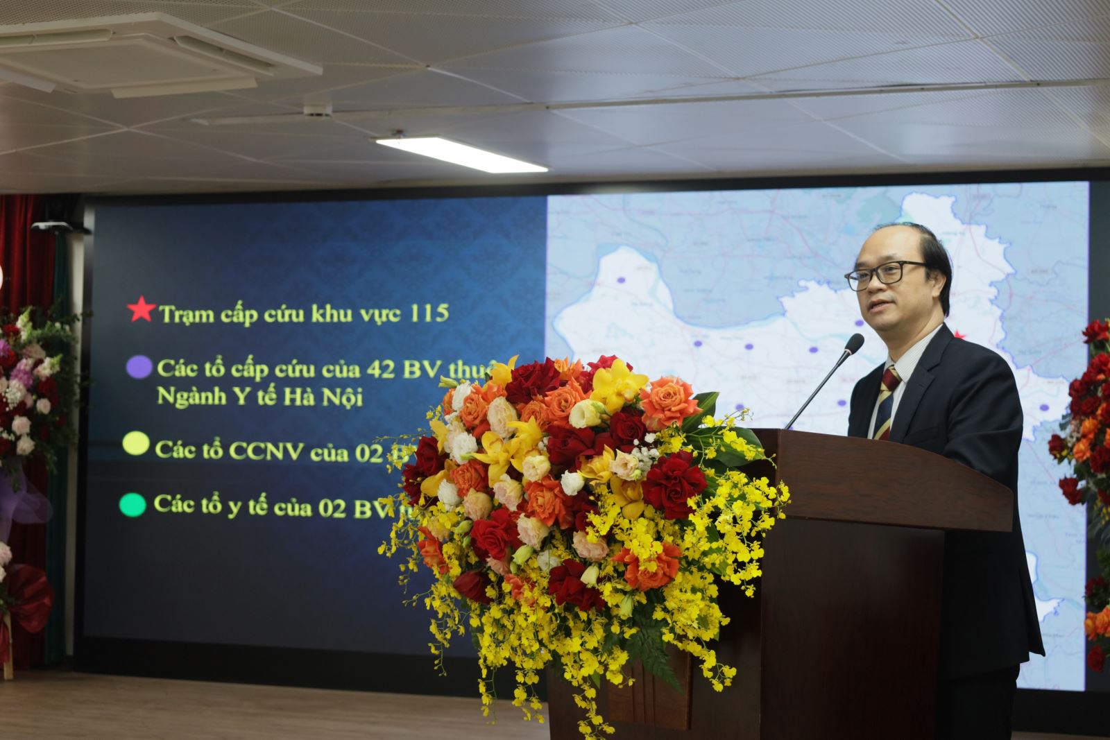TS.BS Nguyễn Thành – Giám đốc Trung tâm Cấp cứu 115 báo cáo nội dung triển khai hoạt động cấp cứu ngoại viện trên địa bàn thành phố.