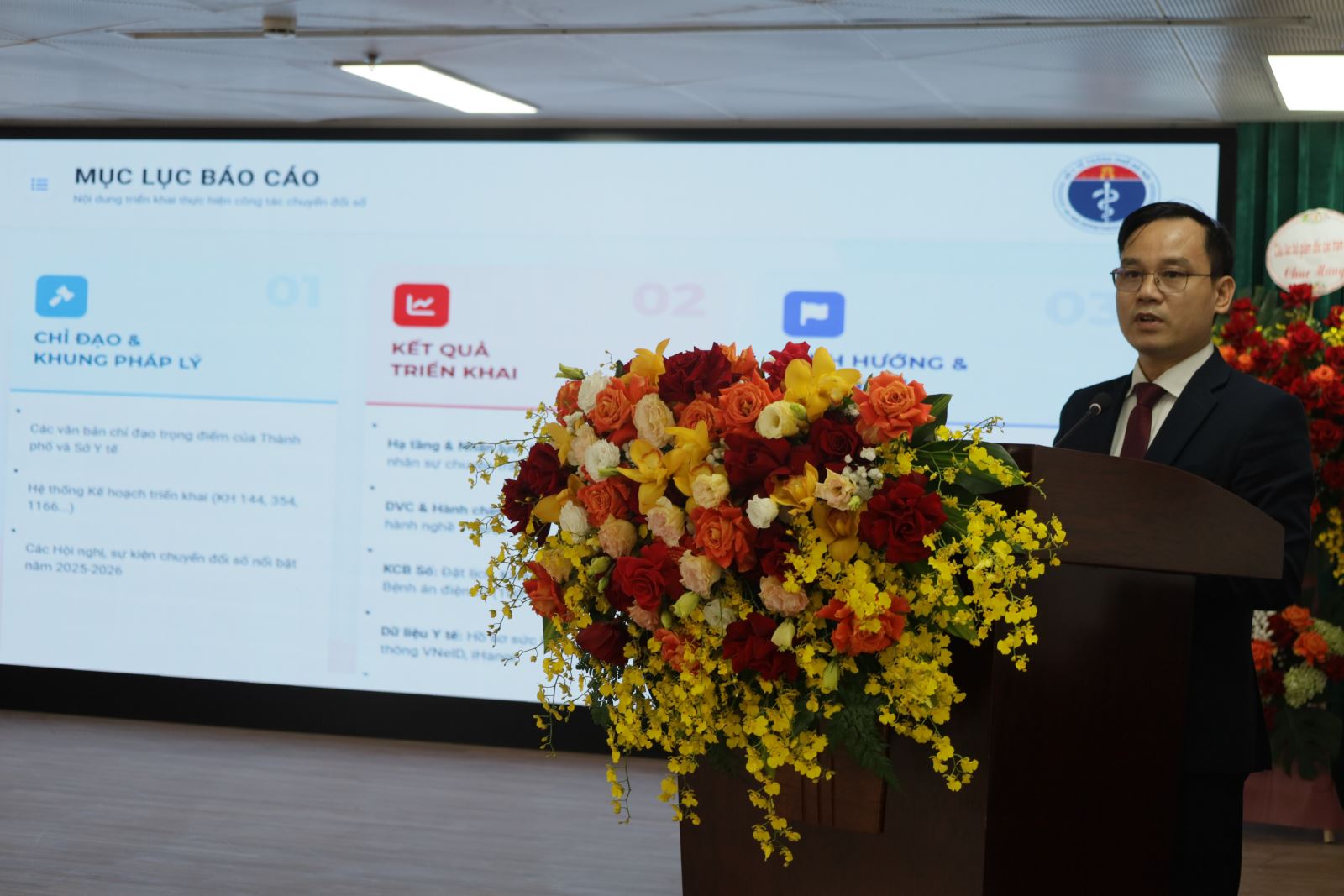 TS.BSCKII Đỗ Viết Tuyến - Trưởng phòng Quản lý BHYT và CNTT, Sở Y tế báo cáo nội dung công tác chuyển đổi số lĩnh vực y tế.
