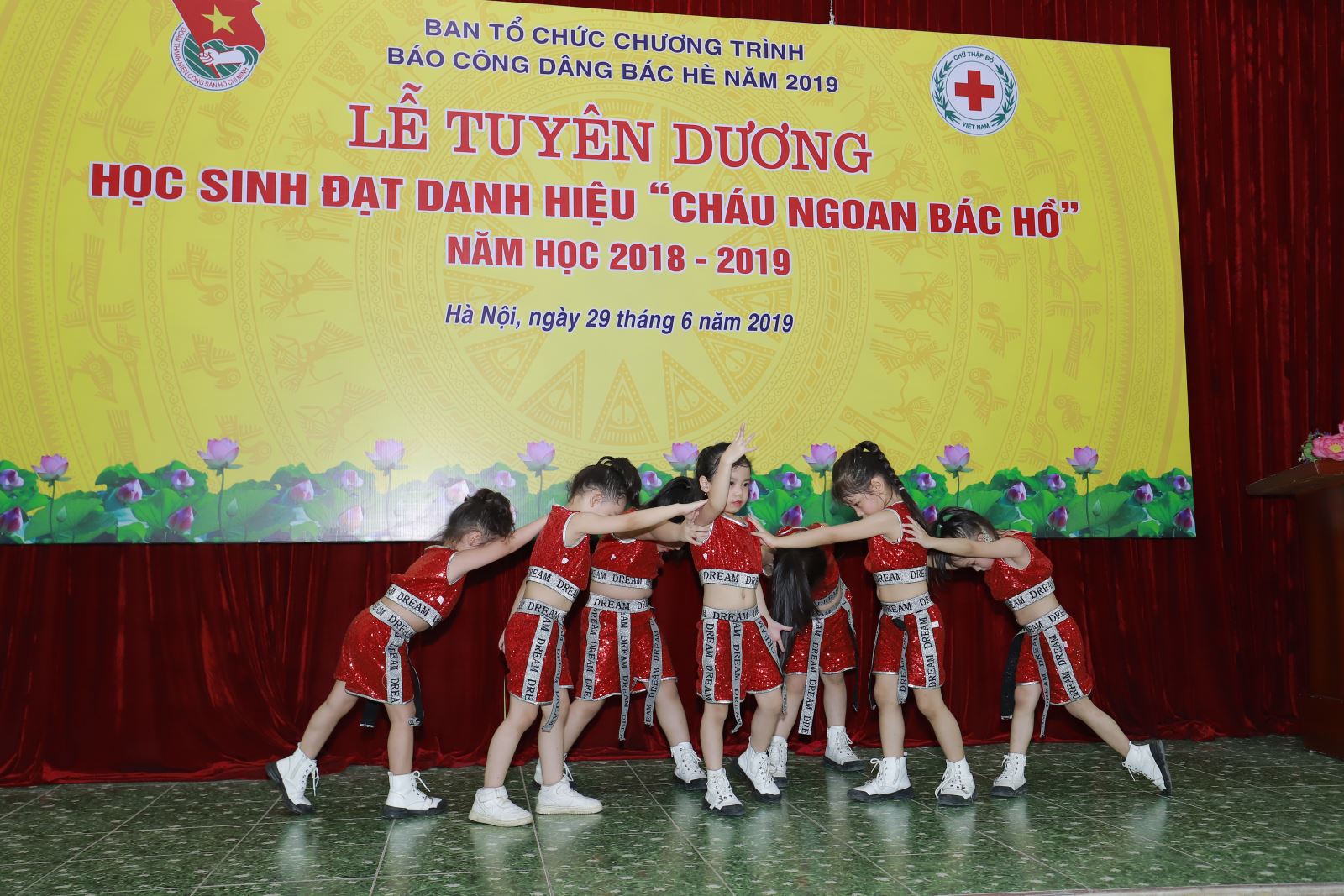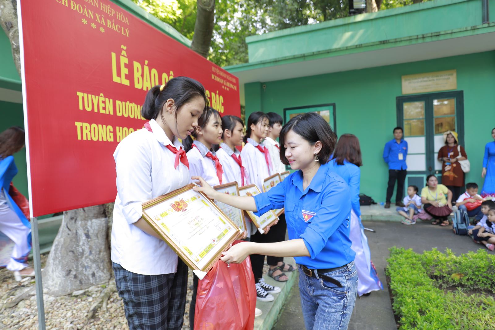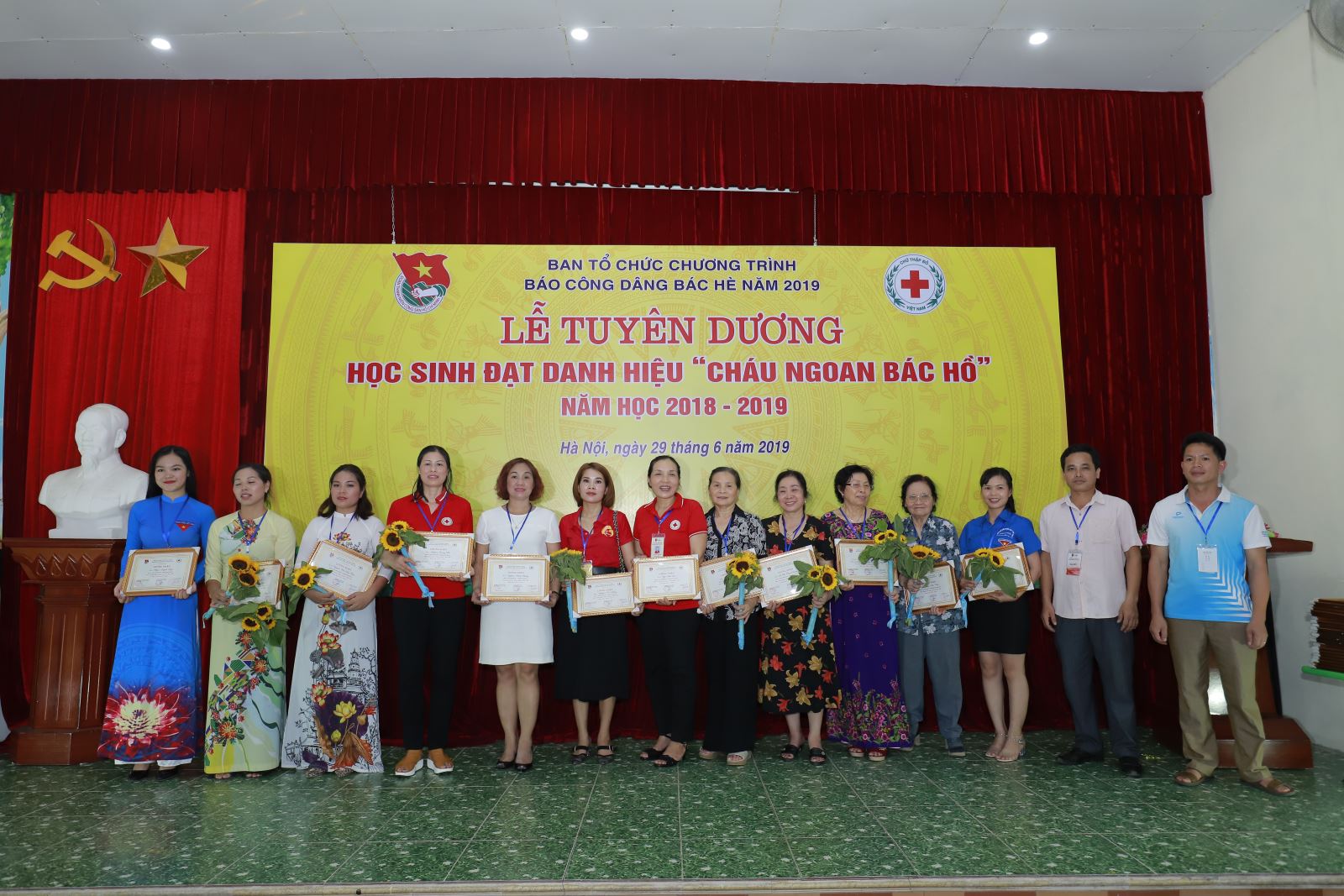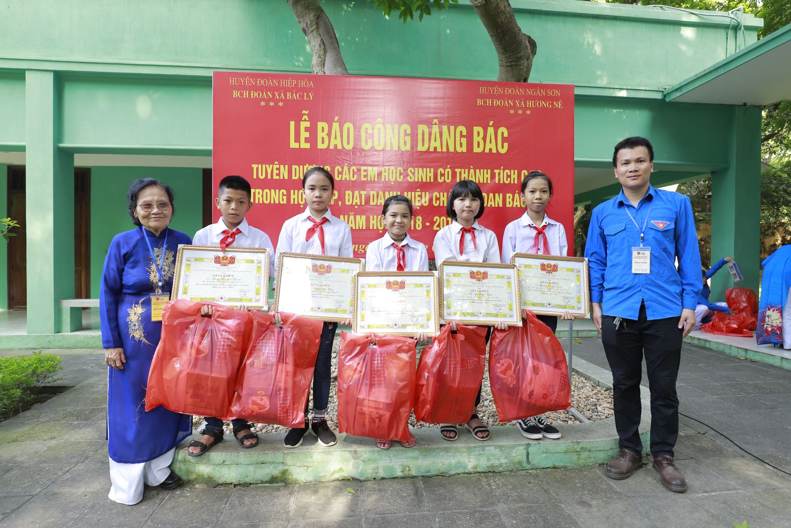 Trong buổi lễ Báo công, 70 em đội viên ưu tú có thành tích cao trong học tập của 2 xã Hương Nê, huyện Ngân Sơn, Bắc Cạn và xã Bắc Lý, huyện Hiệp Hòa, Bắc Giang đã được đại diện lãnh đạo nhà trường báo cáo về thành tích học tập trong năm học 2018-2019.