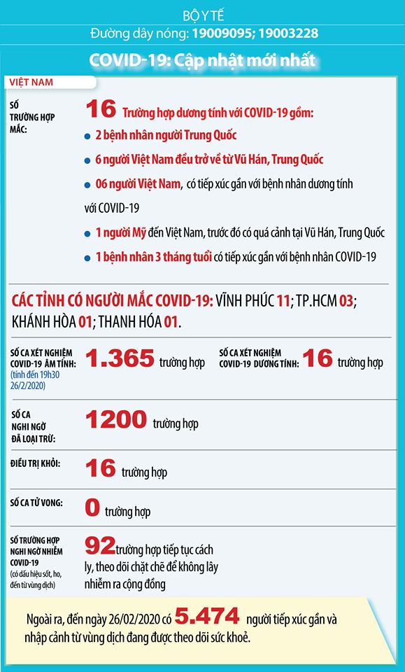 Cập nhật thông tin của Bộ Y tế về bệnh dịch do COVID-19